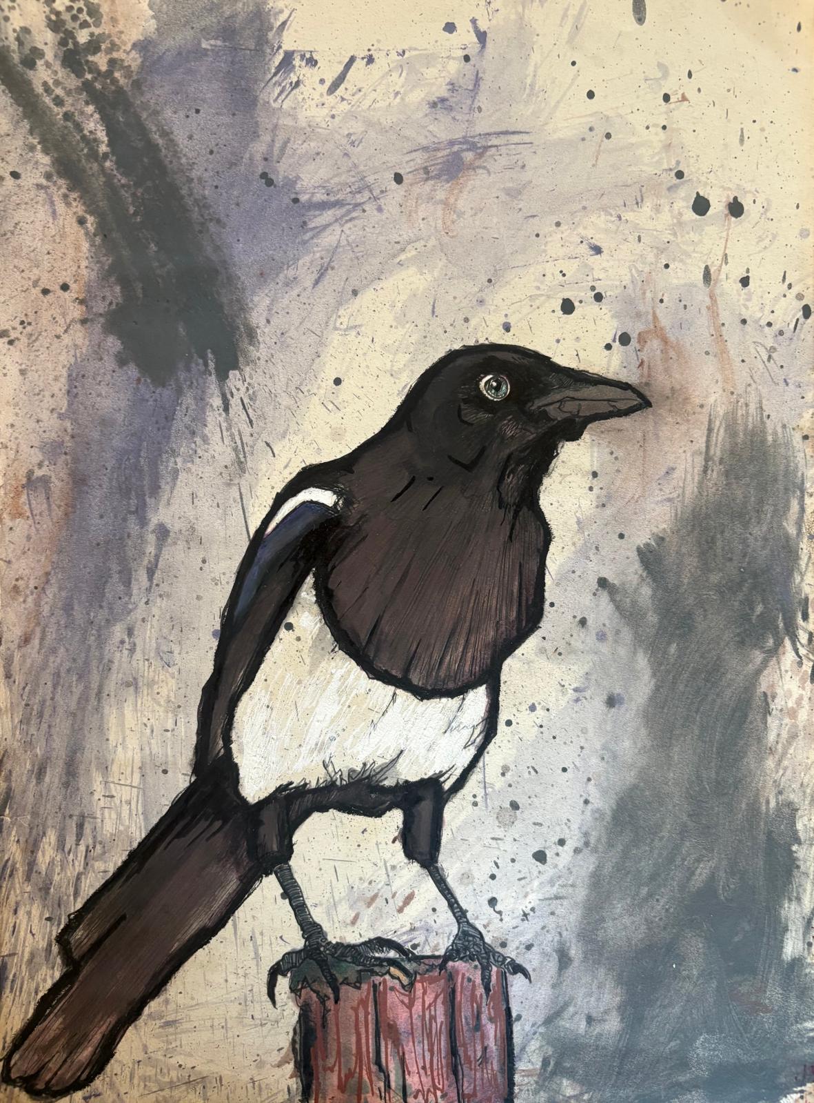 Gemaakt met oost indische Inkt, Markers, oliepastel en olieverf Afmetingen 29,5 cm x 40 cm