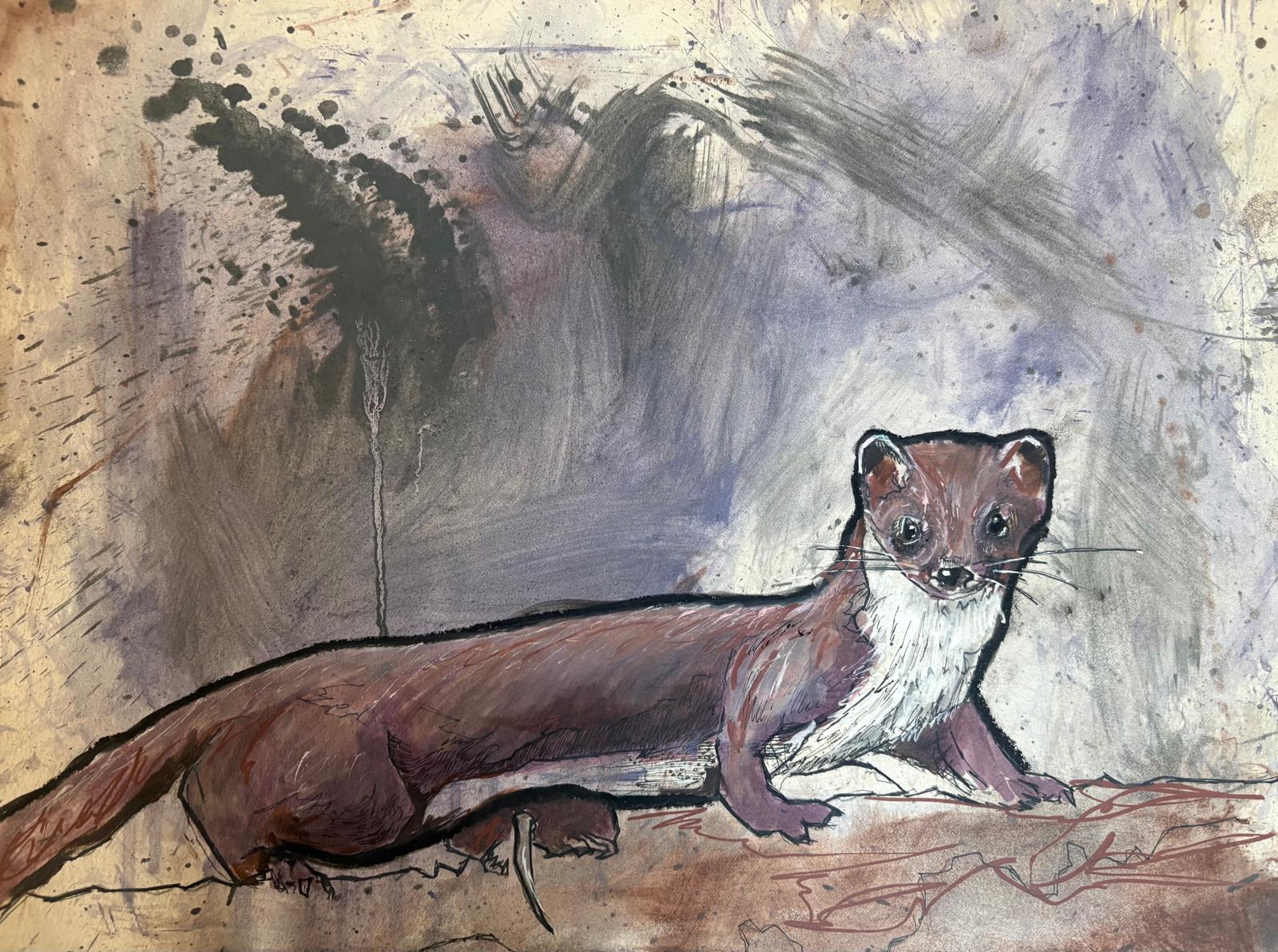 gemaakt met oost indische Inkt, Markers, oliepastel en olieverf Afmetingen 40 cm x 29,5 cm