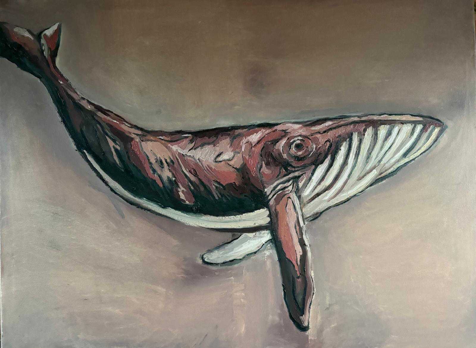 Schilderij met titel: 'Walvis voor Huub.' Geschilderd met olieverf op canvas. Afmetingen: 80 cm x 60 cm.