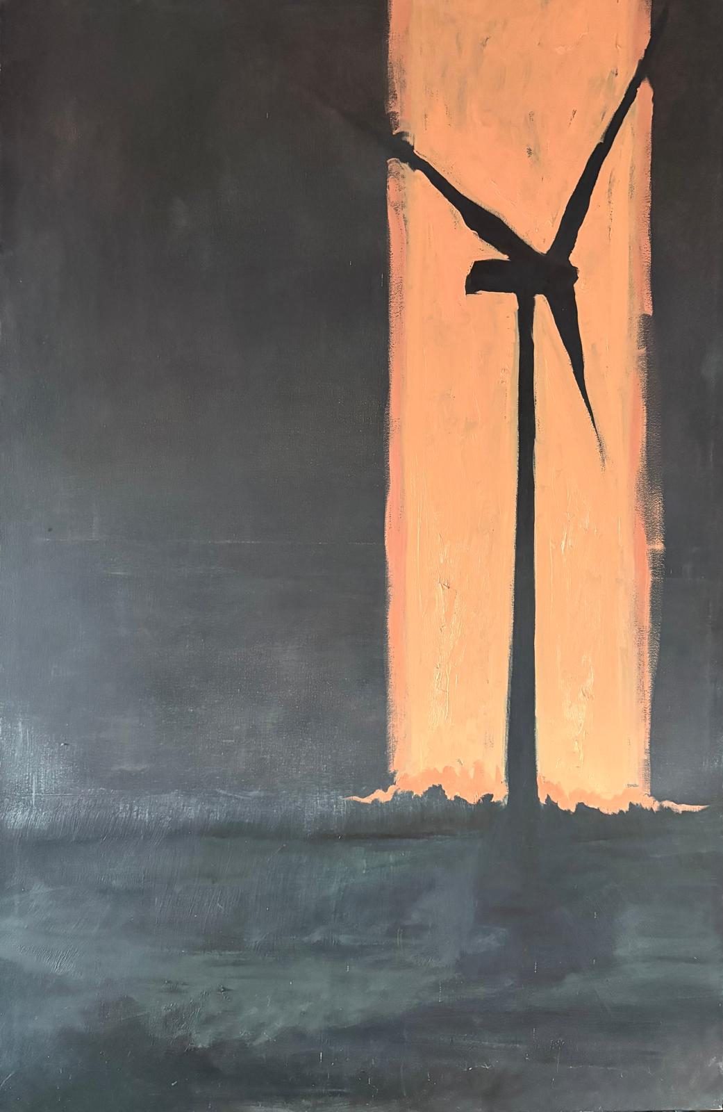 Schilderij met titel: ‘Windmolen met oranje straal.’
