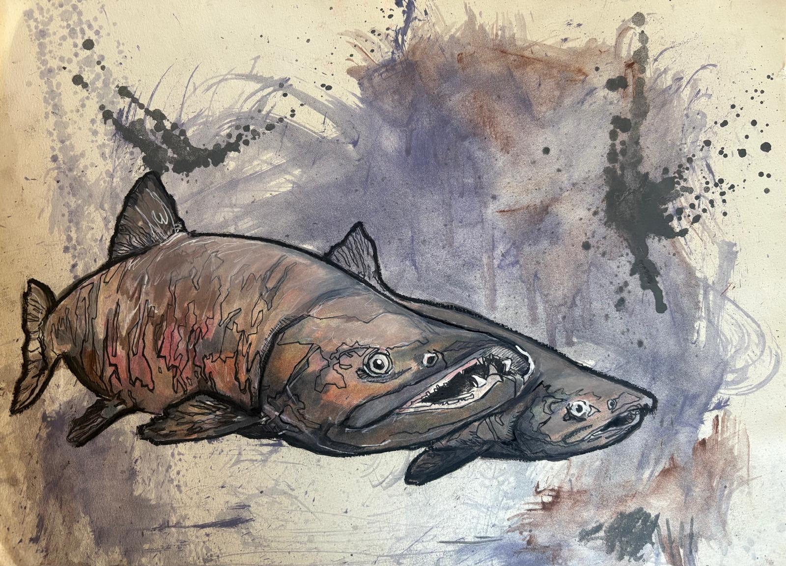 gemaakt met oost indische Inkt, Markers, oliepastel en olieverf Afmetingen 40 cm x 29,5 cm